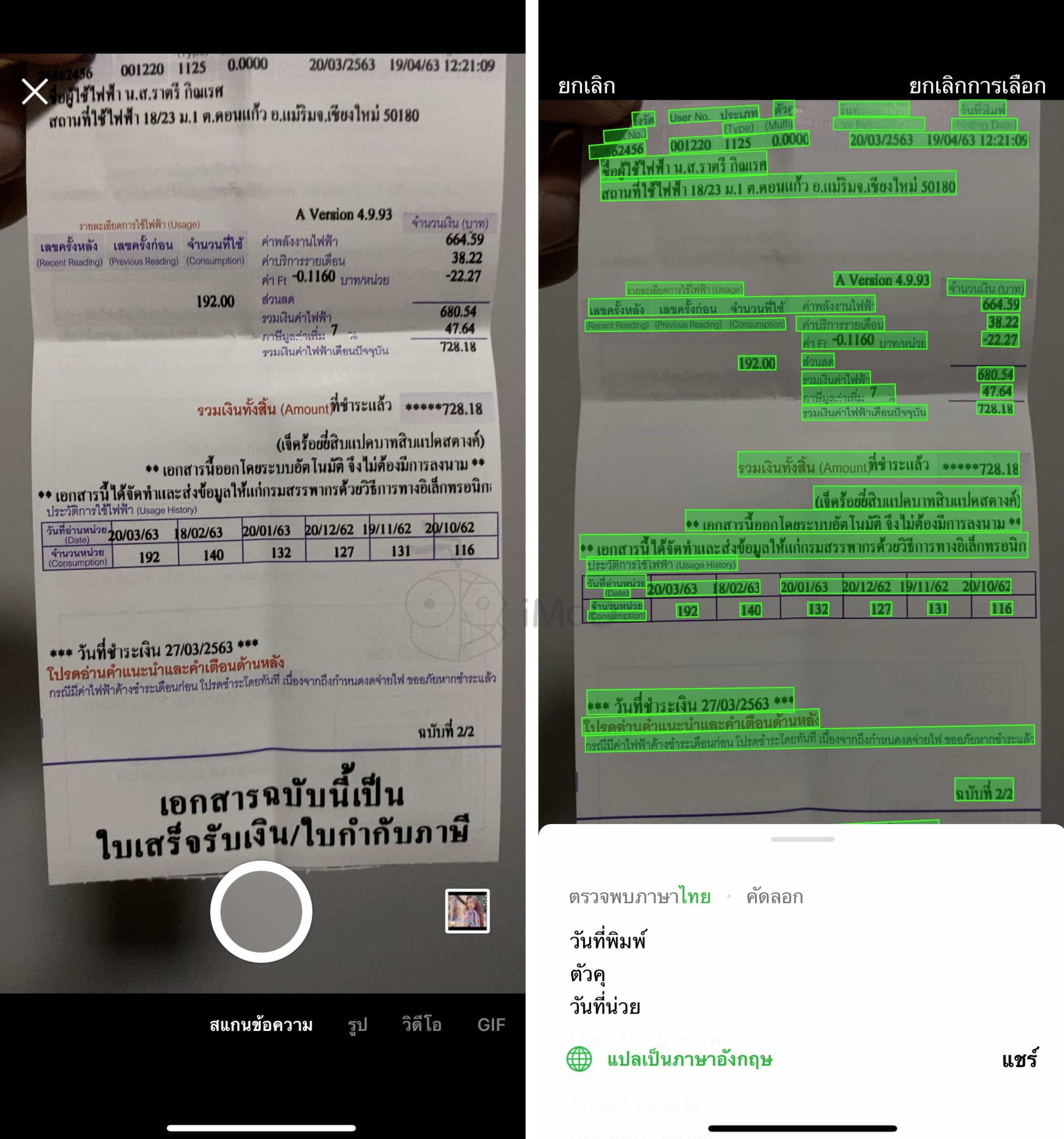 ในเมนูกล้องนั้นก็ได้เพิ่มทางลัดต่าง ๆ ให้ง่ายขึ้น เช่น เมนูสแกนข้อความ สามารถสแกนข้อความในภาพออกมาเป็นตัวอักษรได้เลย