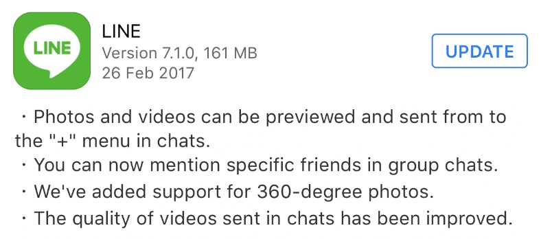 27 กุมภาพันธ์ 2560 LINE ปล่อยอัปเตดเวอร์ชั่น 7.1.0 มาพร้อมความสามารถใหม่ๆ และการเปลี่ยนแปลงที่น่าสนใจดังนี้