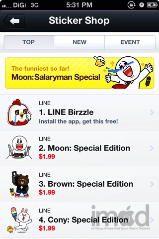 หลังจากที่ LINE อัปเดตเพิ่มแท็บ Event เข้ามาใน LINE 2.5 ตอนนี้ก็ได้รู้แล้วว่าเอาไว้ใช้ทำอะไร พบกับกิจกรรมแรกของ LINE วันนี้คือการแจกสติํกเกอร์ LINE ให้ดาวน์โหลดฟรีสำหรับชุด LINE Birzzle ทำได้ง่ายๆ ใครอยากได้ติดตามกันเลย