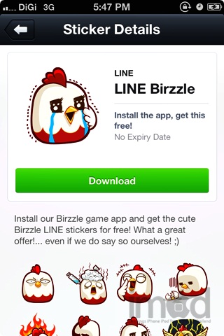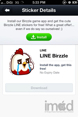 จากนั้นกลับมาที่ Sticker Shop อีกครั้งเราก็จะสามารถดาวน์สติ๊กเกอร์ LINE Birzzle ได้แบบฟรีๆ เลย