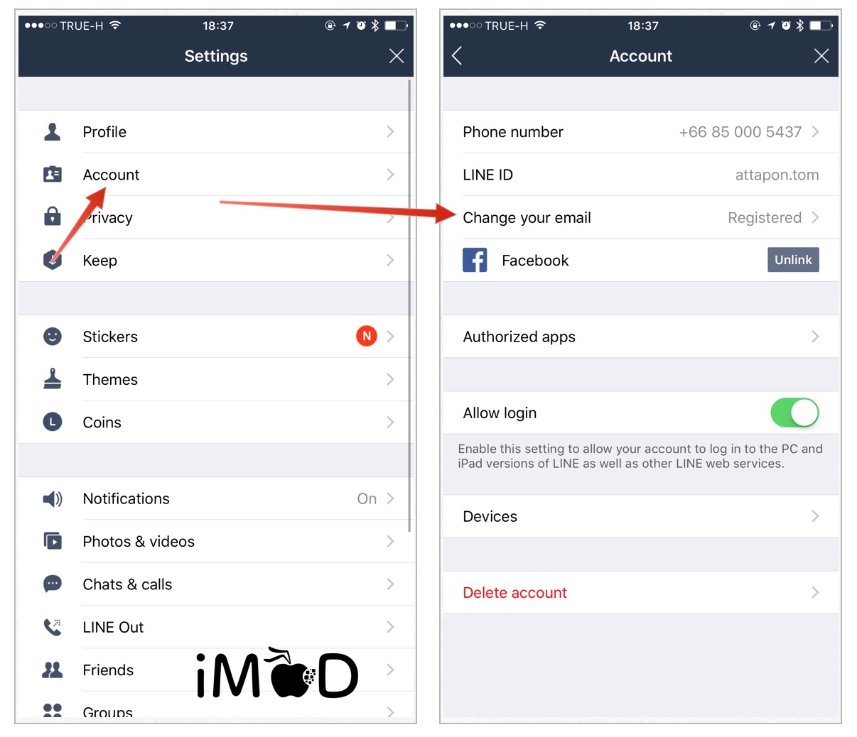 เท่านี้ก็เสร็จสิ้นขั้นตอนการผูก LINE กับ Facebook และอีเมลแล้วนะครับ หลังจากนั้นหากเราติดตั้งแอป LINE ใหม่บน iPhone หรือสมาร์ทโฟนเครื่องอื่นเราสามารถเลือกล้อกอินด้วย Facebook หรืออีเมลได้เลย รายชื่อเพื่อนและกลุ่มต่างๆ ก็จะตามไปหมดเลยครับ