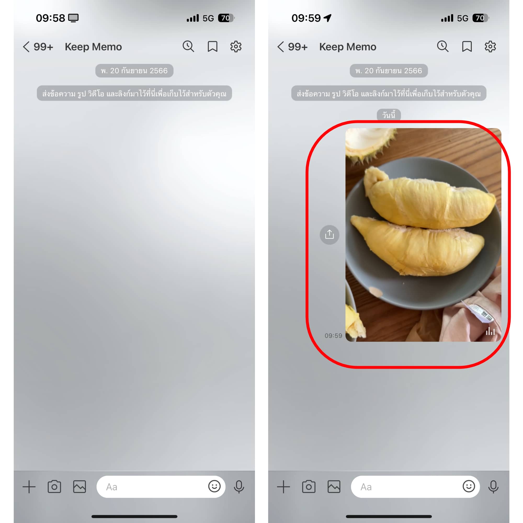 จากนั้นจะมาที่ห้องแชท Keep Memo ให้เราเลือกไฟล์ที่ต้องการเก็บไว้ในห้องแชท แล้วส่งไปในห้องแชทได้เลย เพียงเท่านี้ไฟล์ที่ส่งมาก็จะถูกบันทึกไว้แล้ว แต่การเก็บไฟล์ต่าง ๆ ไว้ในห้องแชทจะเก็บได้ระยะเวลาหนึ่งแต่จะไม่ถาวร