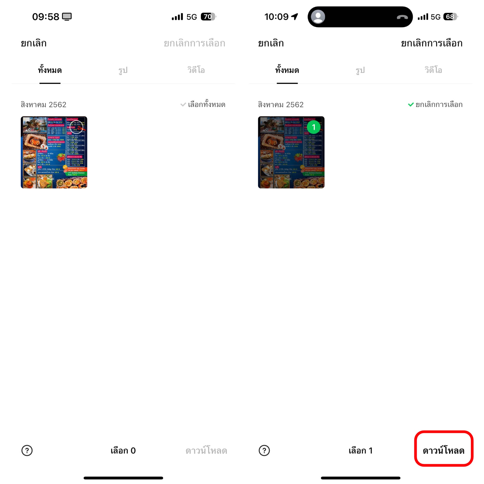 เข้ามาที่ Line จากนั้นไปที่ หน้าหลัก > บริการ > ไอคอน Keep > ดาวน์โหลดรูปและวิดีโอ