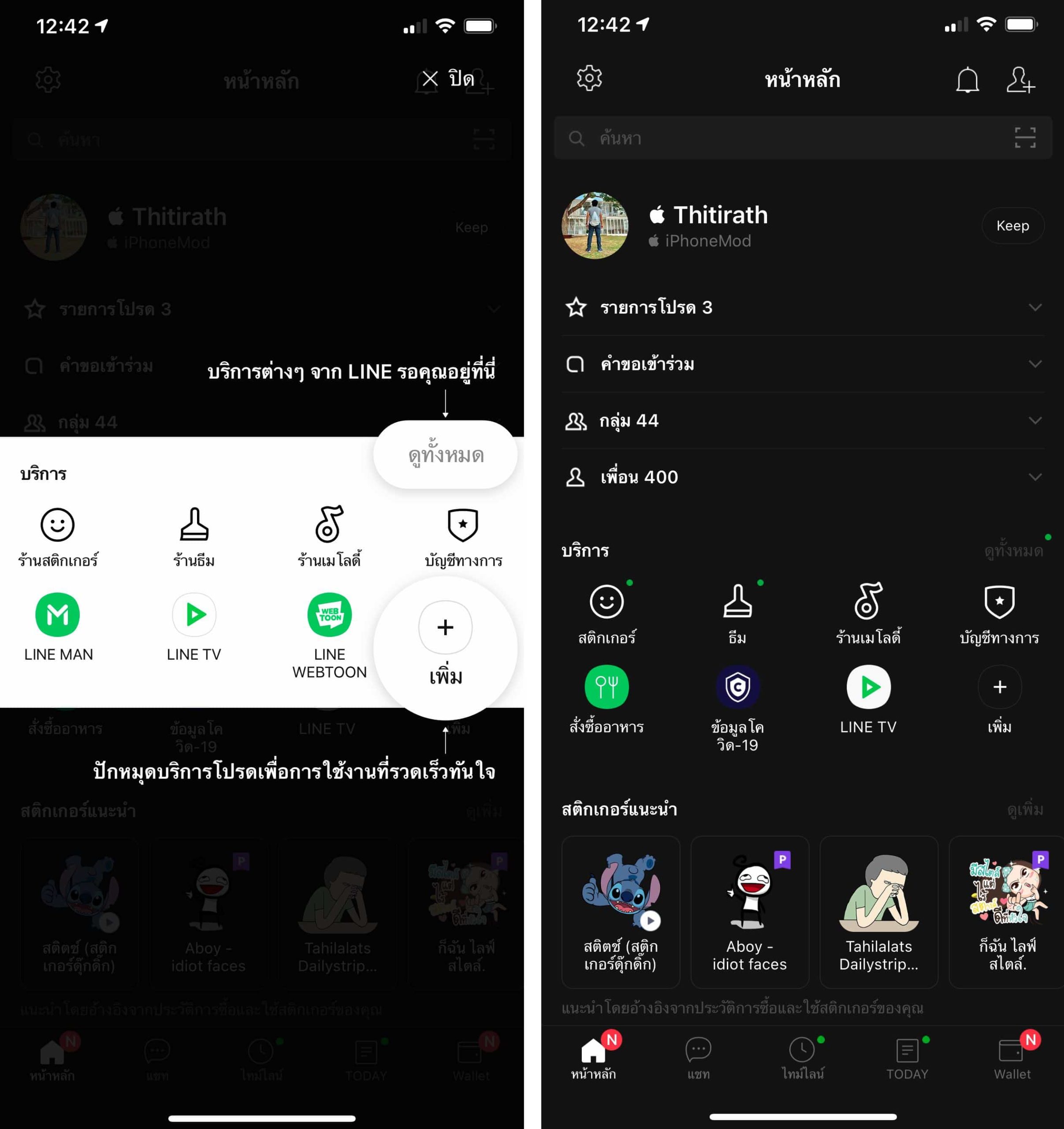 LINE ได้อัปเดตหน้าแรกแอป LINE ใน iPhone โดยปรับย่อรายชื่อเพื่อน กลุ่ม พร้อมเพิ่มทางลัดบริการและรายการสติกเกอร์แนะนำด้วย