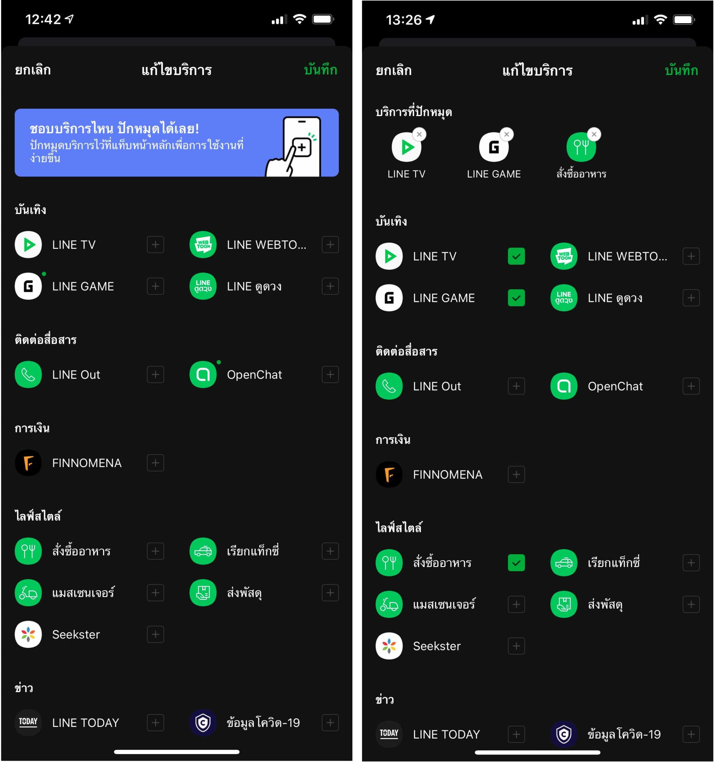 สำหรับทางลัดบริการผู้ใช้สามารถตั้งค่าเพิ่มเติมได้ โดยแตะแก้ไข สามารถเลือกรายการบริการโปรด หรือจัดวางตำแหน่งได้ตามต้องการ (แตะ ดูทั้งหมด > แก้ไข)