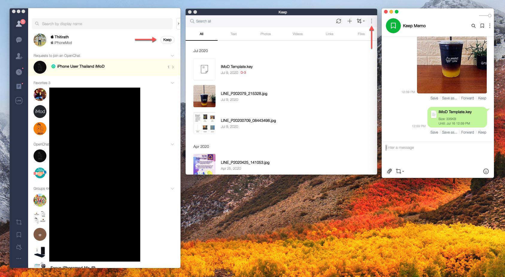 ที่เจ๋งกว่านั้น คือ เราสามารถใช้งาน Keep Memo ร่วมกับแอป LINE ในคอมพิวเตอร์ได้ด้วย เช่น แอป LINE ใน macOS เป็นต้น