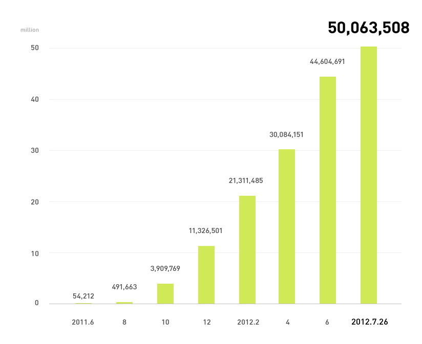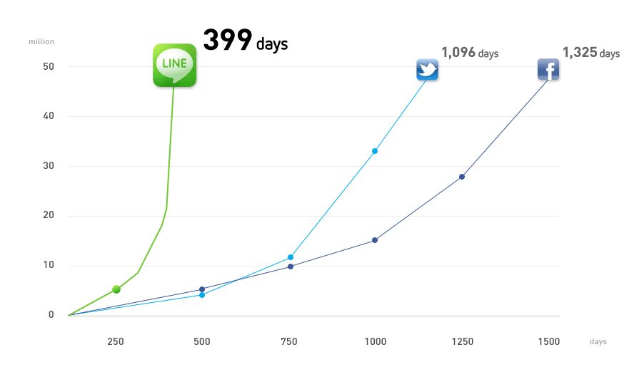 หลังจากที่ LINE เปิดตัวเมื่อเดือนมิถุนายน 2011 ที่ผ่านมาก็ 1 ปีกับ 1 เดือนตอนนี้ก็มียอดผู้ใช้ทะลุครึ่งร้อยล้านเป็นที่เรียบร้อย ลองดูกราฟประกอบแสดงยอดผู้ใช้งานดูครับ