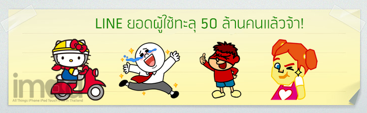 วันนี้ LINE Naver Japan ได้ประกาศสถิติที่น่าสนใจให้ผู้ใช้งานได้ทราบ ว่าตอนนี้มีผู้ลงทะเบียนใช้งาน LINE มากกว่า 50 ล้านคนทั่วโลกเป็นที่เรียบร้อยแล้ว พร้อมกับประกาศว่าจะเพิ่มฟีเจอร์ใหม่เร็วๆ นี้เพื่อให้ LINE นั้นน่าใช้งานมากกว่าเดิม