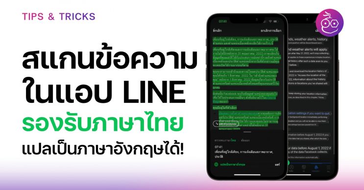 ฟีเจอร์สแกนข้อความในแอป LINE เป็นฟีเจอร์ที่มีประโยชน์มาก ช่วยให้เราดึงข้อความตัวหนังสือที่อยู่ในรูปภาพออกมาใช้งาน คัดลอก แปลภาษาไทย ที่สำคัญคือรองรับภาษาไทย!