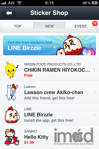 5. กลับมาที่ Device เปิดเข้าแอพ Line อีกครั้งไปที่ Settings > Sticker Shop ก็จะเจอกับสติ๊กเกอร์ใหม่ให้โหลดมาใช้แล้วจ้า