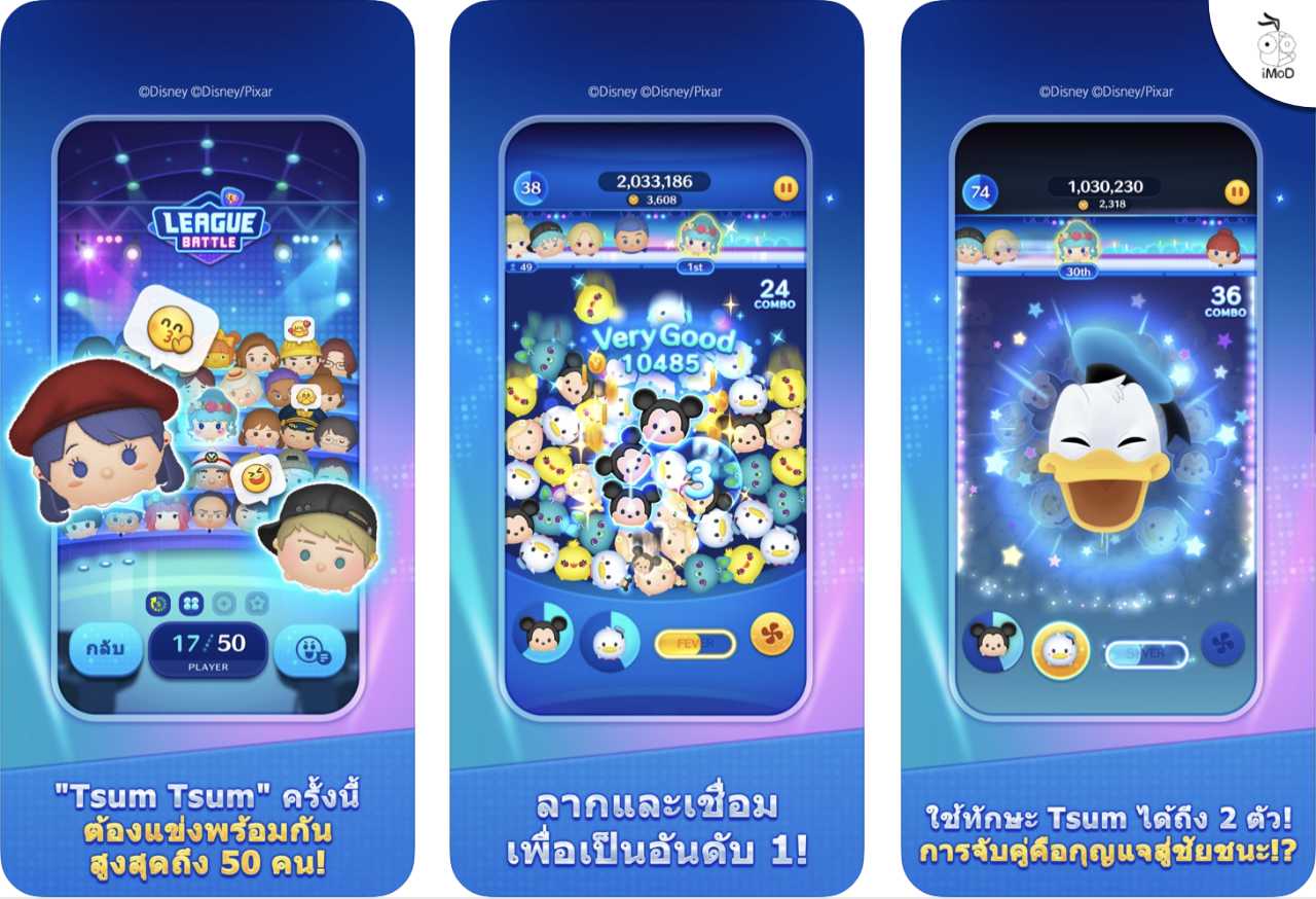 เกมมือถือแนวพัซเซิลเชื่อมลูกบอล Tsum Tsum แบบเดียวกันมากกว่า 3 ตัวขึ้นไป ที่มาในธีมของตัวละครลิขสิทธิ์แท้จาก ©Disney/Pixar ไม่ว่าจะเป็น Mickey Mouse, Winnie the Pooh, Frozen และอื่นๆ อีกมากมาย