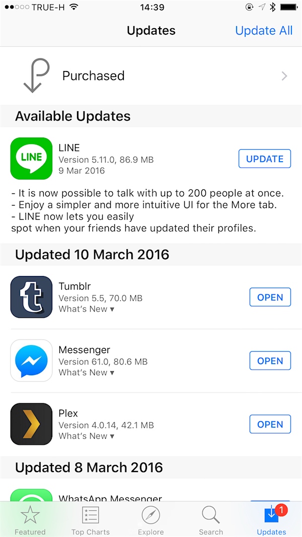 LINE บน iOS เปิดอัปเดตเวอร์ชันใหม่กับ LINE V.5.11.0 การเปลี่ยนแปลงหลักๆ นั้นจะเป็นส่วนการออกแบบ UI ใหม่ของแท็บ More ที่ช่วยดูใช้งานได้ง่ายมากยิ่งขึ้น นอกจากนี้ยังสามารถส่งข้อความหาเพื่อนสูงสุด 200 คนในครั้งเดียว (ความสามารถใน LINE Group)