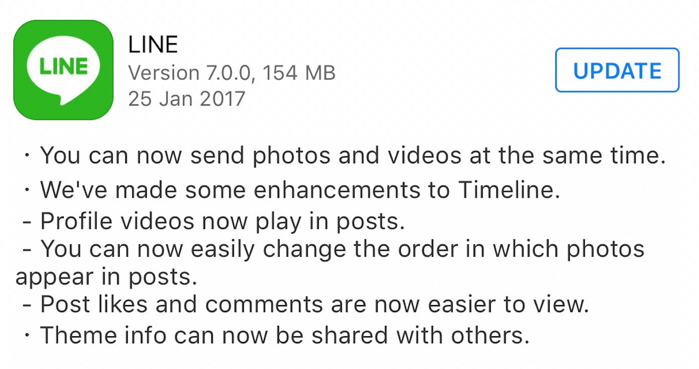 ทาง LINE ได้แจ้งรายการละเอียดการเปลี่ยนแปลงในเวอร์ชันนี้ประกอบไปด้วย