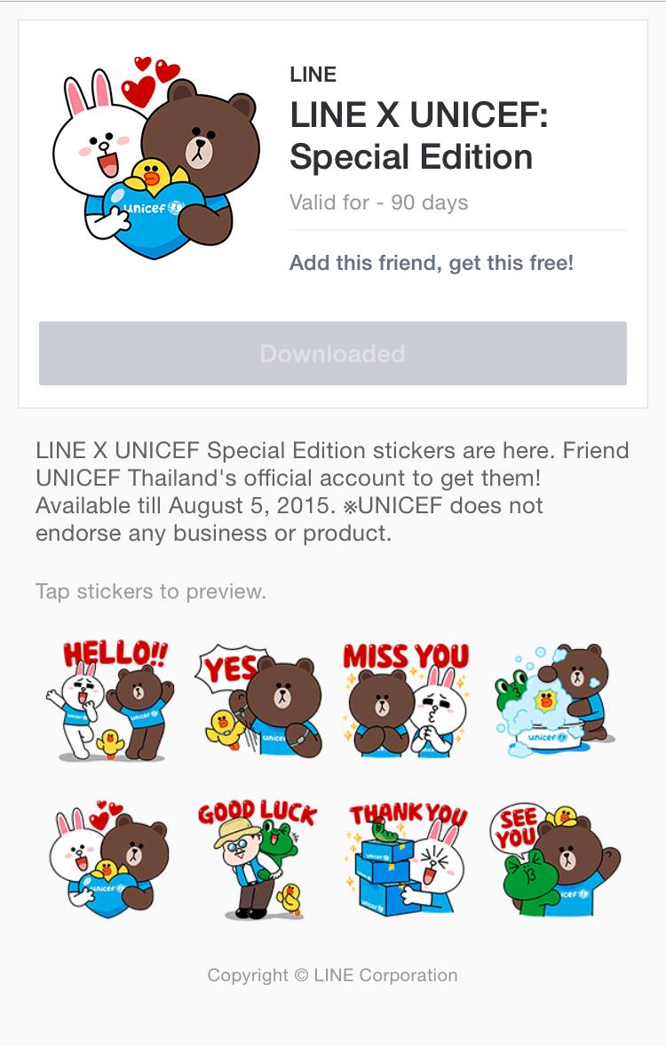 และเพื่อเป็นการแสดงสัญลักษณ์ในการมีส่วนร่วม และสนับสนุนสิทธิของเด็กให้ได้เติบโตอย่างเต็มศักยภาพ UNICEF จึงร่วมกับ LINE ในการออกสติกเกอร์พิเศษออกมา ซึ่งทุกท่านสามารถดาวน์โหลดได้ฟรีเพียง add Official Account ของ UNICEF Thailand ตั้งแต่วันนี้ – 5 สิงหาคมนี้