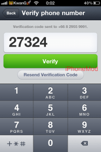 รอเค้าส่งโค้ดมาให้ แล้วใส่โค้ดที่ได้รับลงไปในช่อง แล้วกด Verify หากรอนานแล้วยังไม่ได้โค้ดสามารถกด Resent Verification Code เพื่อให้แอพส่งโค้ดมาอีกครั้ง