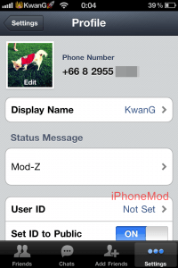 ก่อนอื่นเข้ามาใน Settings เพื่อใส่รูป และปรับตั้งค่าต่างๆ โดยความพิเศษของแอพนี้คือ เราสามารถสร้าง ID ของเราได้เอง ในช่อง User ID