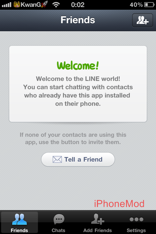 เมื่อเข้ามาหน้าแรก จะพบกับคำสั่งต่างๆ ทั้ง Friends, Chats, Add Friends และ Settings
