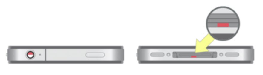 วิธีตรวจสอบ แถบแสดงสถานะการสัมผัสของเหลว (LCI) หรือแถบวัดความชื้น ของ iPhone, iPod แต่ละรุ่นว่าอยู่ตรงไหน โดยถ้าหาก LCI เป็นสีแดง Apple จะไม่รับประกันตัวเครื่อง