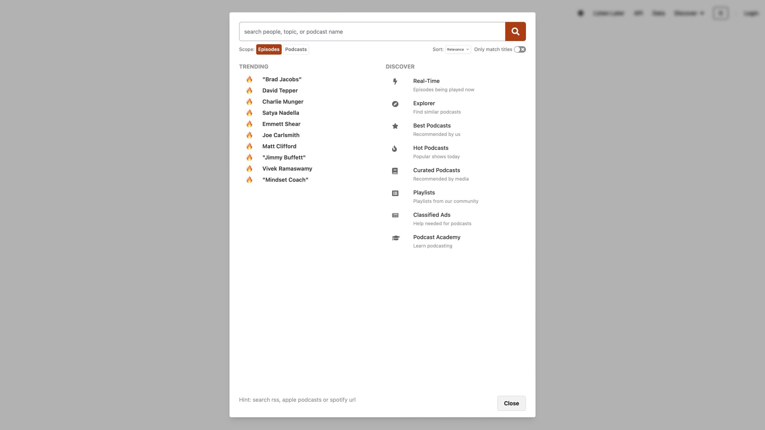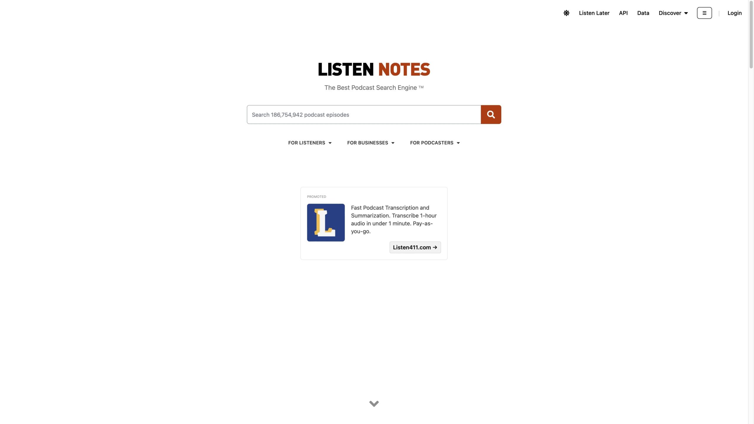 มาที่เว็บ 👉🏻 ListenNotes.com แล้วกดช่อง “Search🔎”
