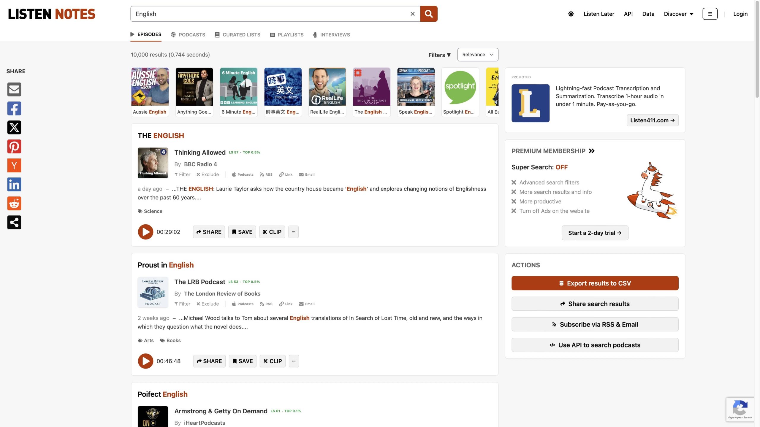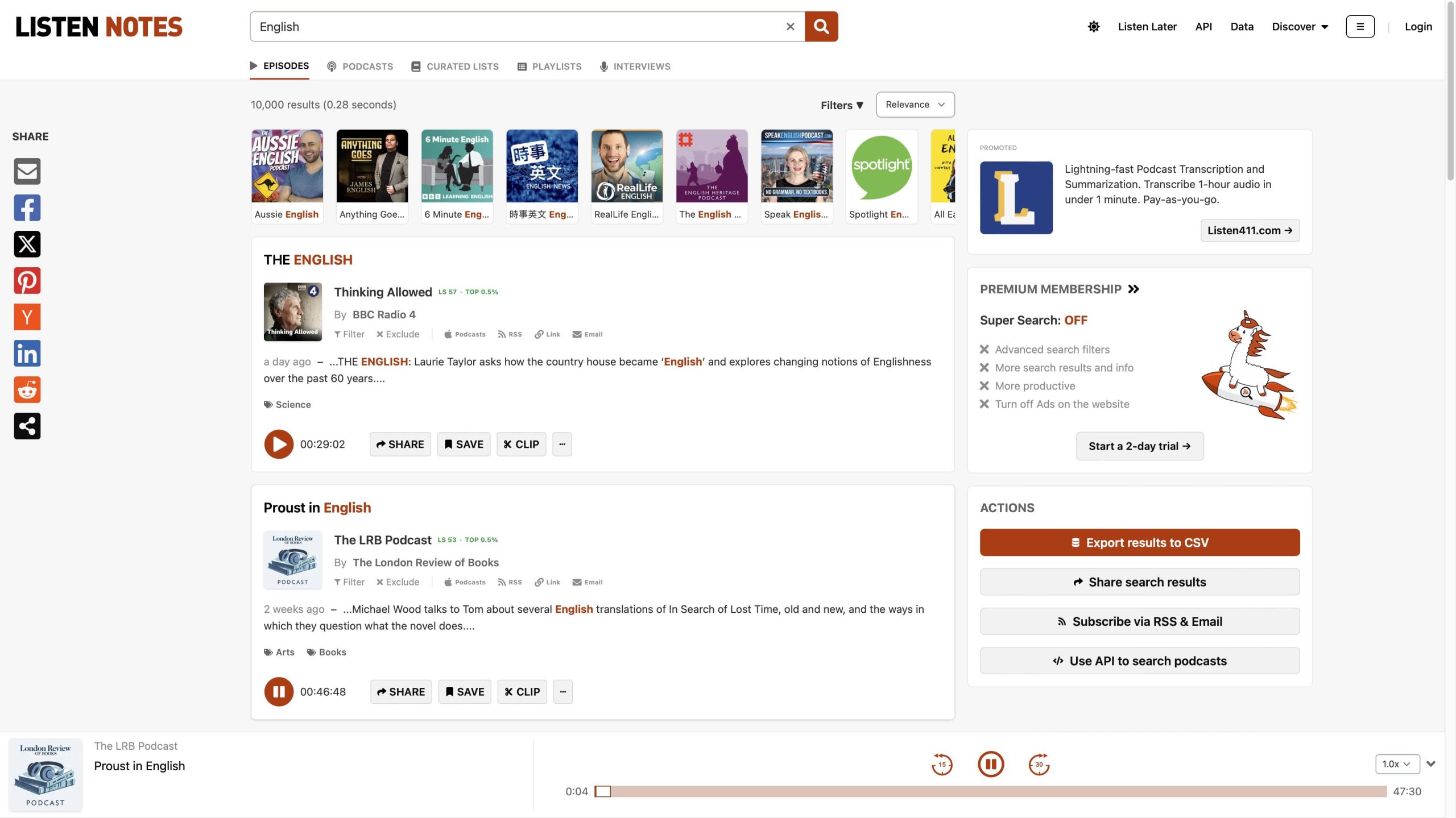 เช่น ทีมงานค้นหาว่า English ก็จะขึ้น Podcast เกี่ยวกับ English จากทั่วโลกเลยนะ มีให้เลือกเยอะมาก
