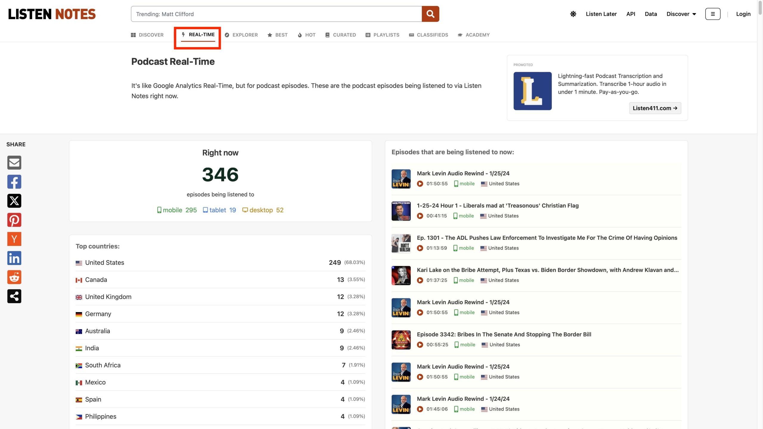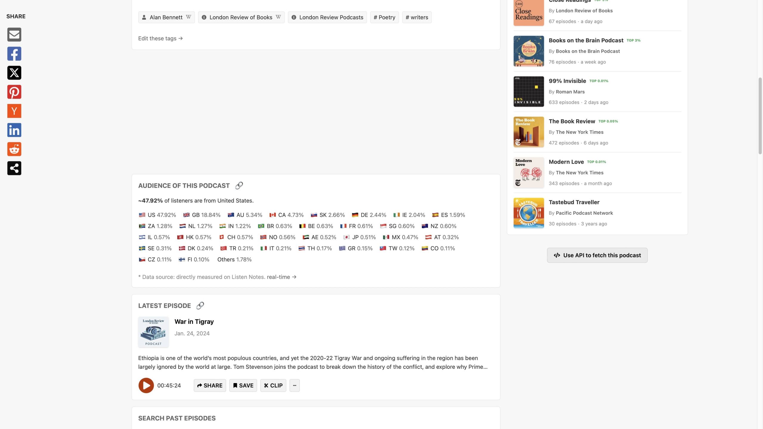 แถมยังดูได้ด้วยว่าผู้ฟัง Podcast ส่วนใหญ่มาจากประเทศไหน