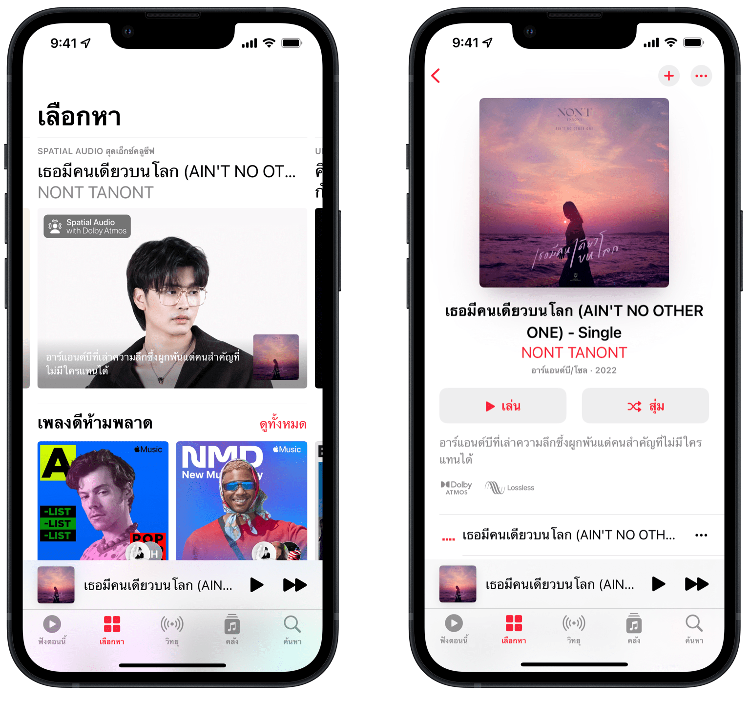 ฟังซิงเกิ้ลใหม่ของ NONT TANONT “เธอมีคนเดียวบนโลก (AIN’T NO OTHER ONE)” ในรูปแบบ Spatial Audio ได้แล้ววันนี้บน Apple Music ที่เดียวเท่านั้น