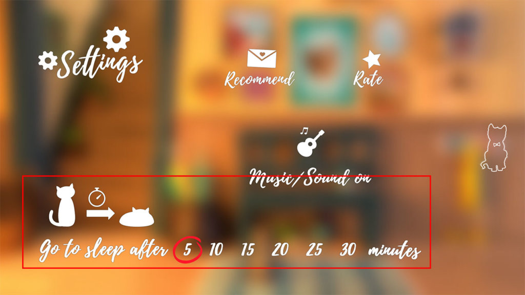 ผู้ปกครองสามารถจำกัดเวลาการเล่นสำหรับเด็ก ๆ ในเกมได้ โดยการตั้งเวลานอนหลับของเจ้าแมวเหมียว เมื่อถึงเวลาแมวเหมียวก็จะง่วงแล้วก็ไปนอนหลับ โดยมีวิธีตั้งค่า ดังนี้