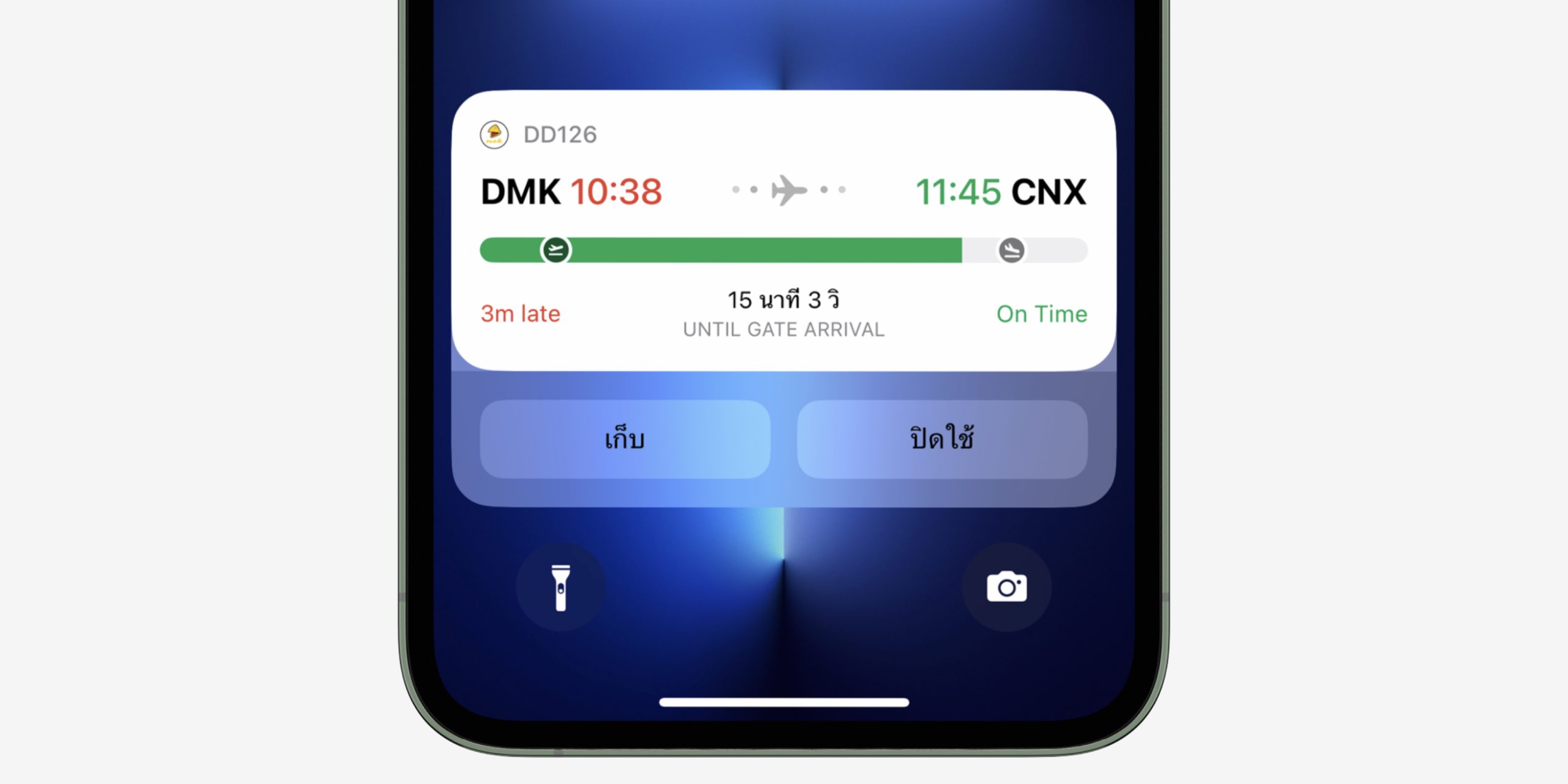 ฟีเจอร์ Live Activities ช่วยในการดูข้อมูลแบบเรียลไทม์ โดยที่เราไม่ต้องเข้าไปตรวจเช็ค หรือรีเฟรชข้อมูลใหม่ เพียงแค่แตะหน้าจอ หรือ ยก iPhone ของเราขึ้นมา อำนวยความสะดวกสบาย รวดเร็ว เช่น กรณีที่เราอยู่ระหว่างการเดินทาง หรือ ต้องการเช็คข้อมูลไวๆ