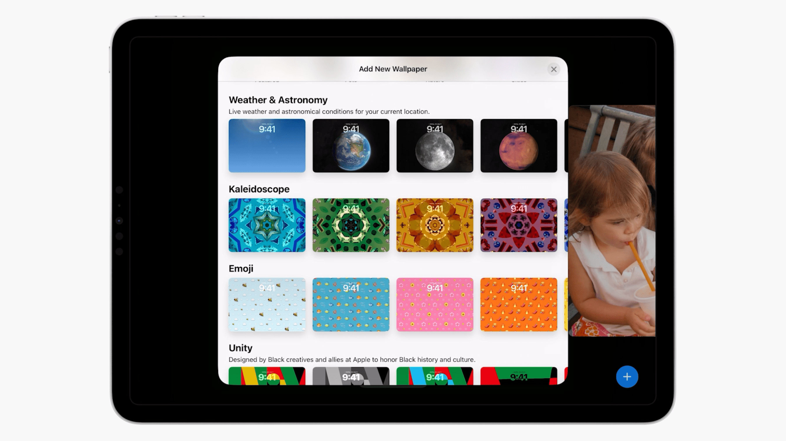 การปรับแต่งหน้าจอล็อคบน iPadOS 17 ทำได้ค่อนข้างเหมือนกับบน iPhone รวมถึงวิธีการตั้งค่าด้วย เพียงแค่แตะค้างที่หน้าจอล็อค จากนั้นก็สามารเลือกวอลเปเปอร์ได้เลย โดยวอลเปเปอร์ที่เพิ่มเข้ามาเป็นวอลเปเปอร์จาก iOS 16 เช่น สภาพอากาศ, Unity, อิโมจิ, ดาราศาสตร์, Gradient, ธีม Pride และที่เพิ่มเข้ามาใหม่ คือ วอลเปเปอร์ “Hello” และภาพพื้นหลัง iPad จากปี 2010