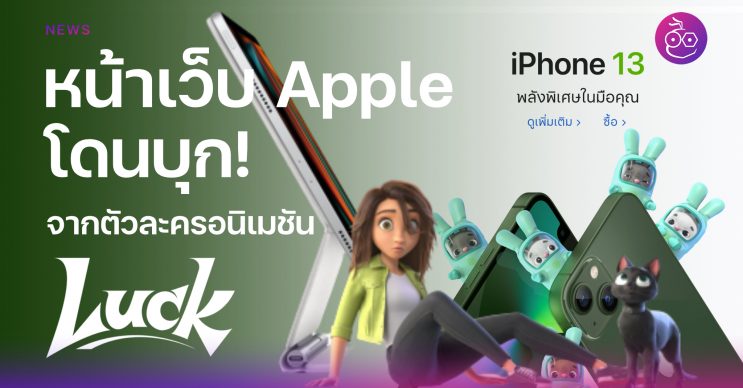 ล่าสุดวันที่ 5 สิงหาคม หน้าเว็บ Apple โดนบุก! โดย ตัวละครจากอนิเมชัน Luck โดนก่อกวนทุกอุปกรณ์ ไม่ว่าจะเป็น iPhone, iPad และ Macbook Air ซึ่งเป็นวันที่อนเมชันเรื่องนี้พร้อมสตรีมบน Apple TV+ เป็นวันแรก