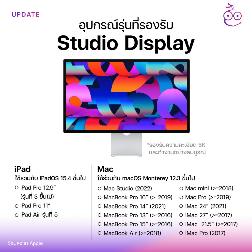 ใครที่สนใจซื้อหน้าจอ Studio Display ก็อย่าลืมเช็คอุปกรณ์ที่จะรองรับกับหน้าจอนี้ด้วยนะคะ เพื่อการใช้งานที่เต็มประสิทธิภาพ
