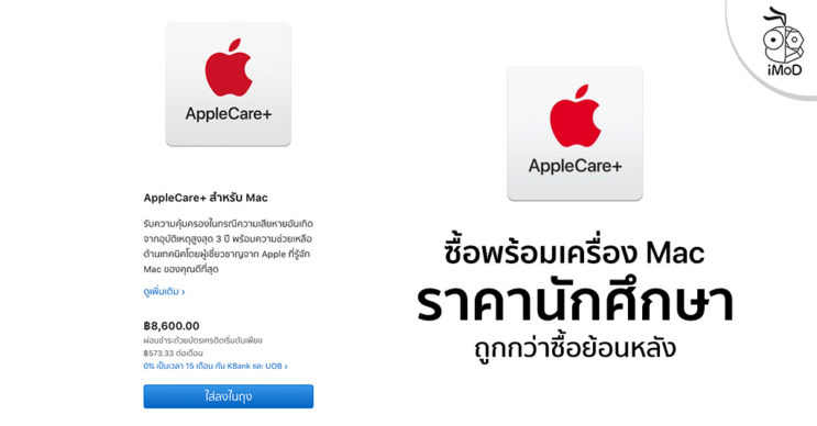 ส่วนการซื้อเครื่อง Mac พร้อมกับประกัน AppleCare+ ใน U.Store นั้น จะได้ราคา AppleCare+ สำหรับนักศึกษาหรือไม่ แนะนำให้สอบถามกับพนักงานหน้าร้านอีกครั้งนะคะ