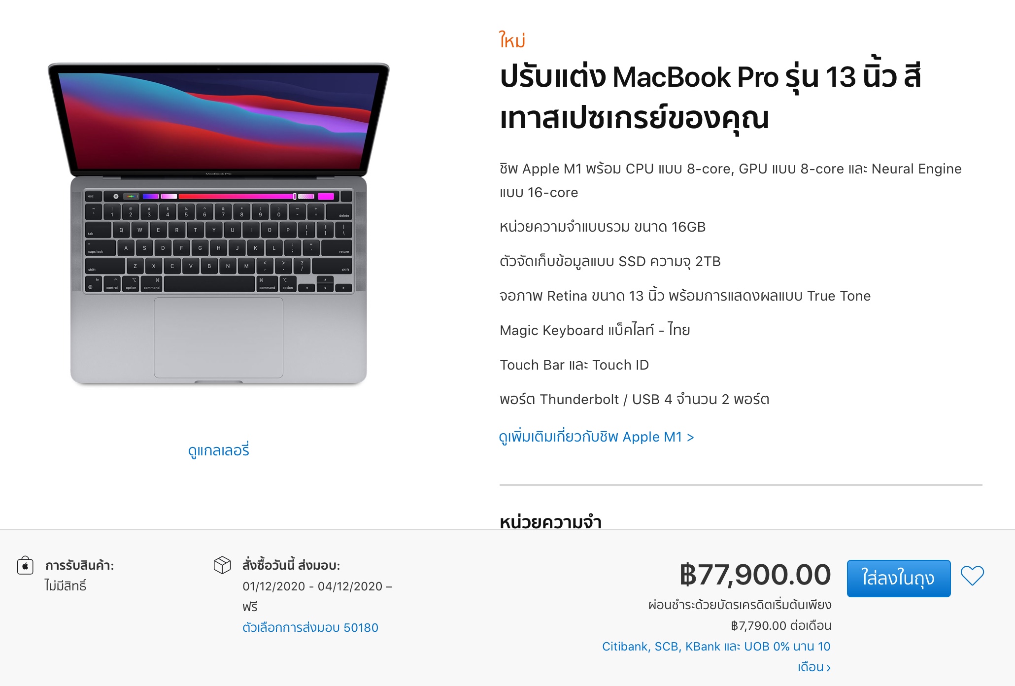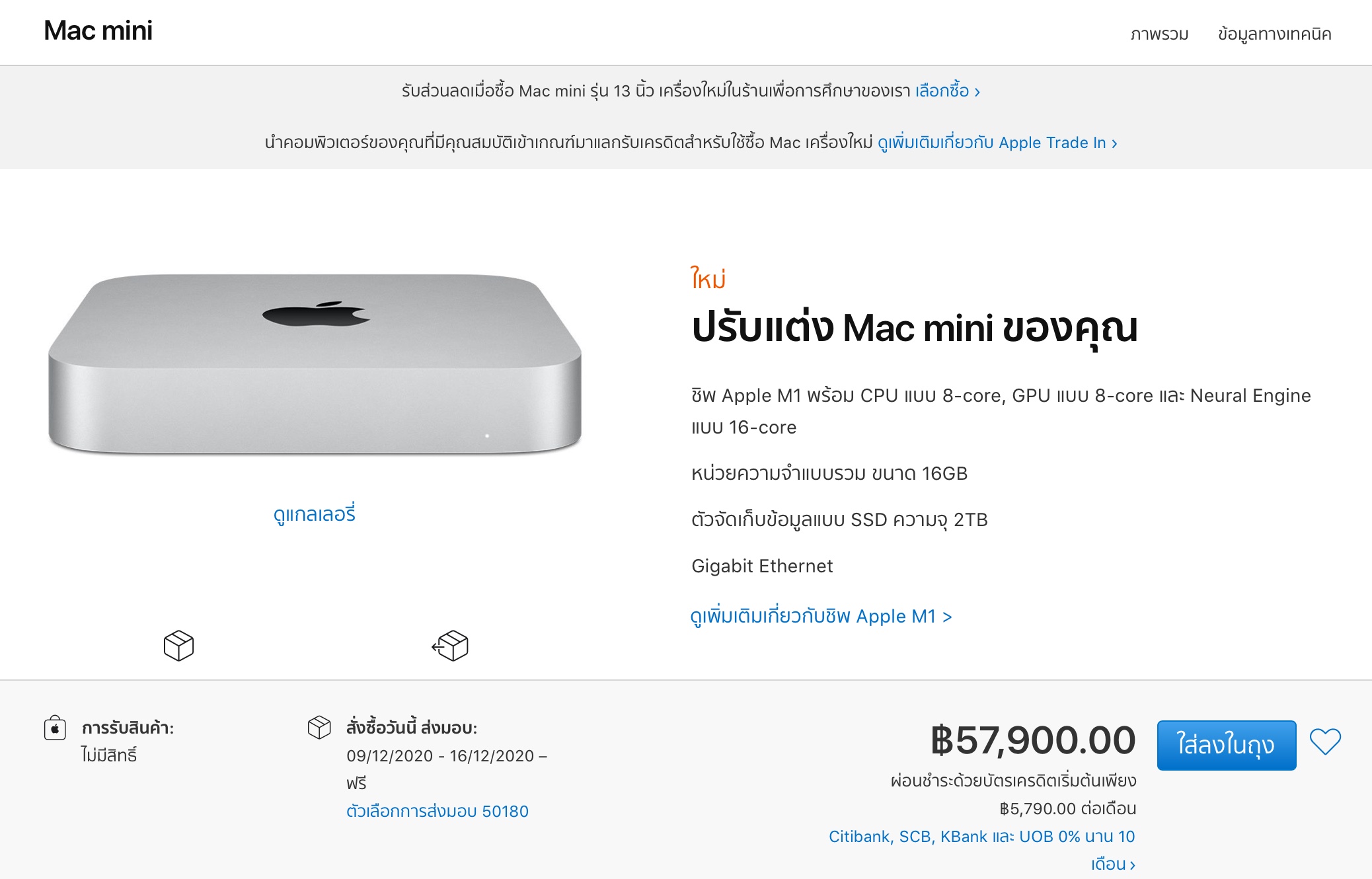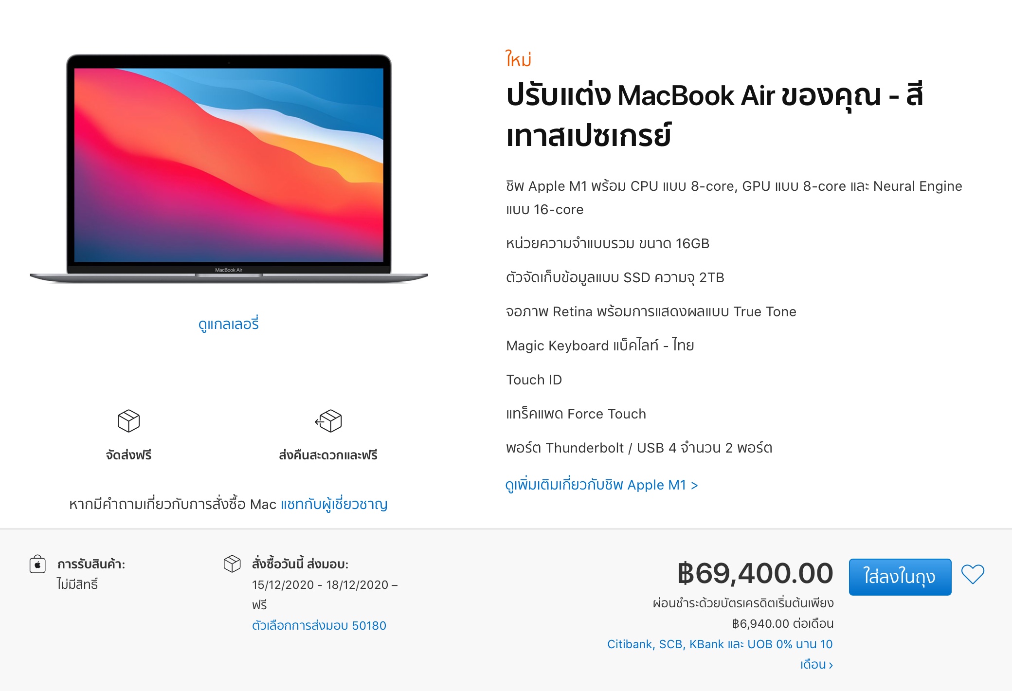 ลูกค้าสามารถกดสั่งซื้อ MacBook Air, MacBook Pro 13 นิ้ว, Mac mini รุ่นชิป M1 ได้แล้วที่ Apple Store ออนไลน์ไทย โดยวันรับสินค้าจะขึ้นอยู่กับการปรับแต่งของลูกค้าด้วย
