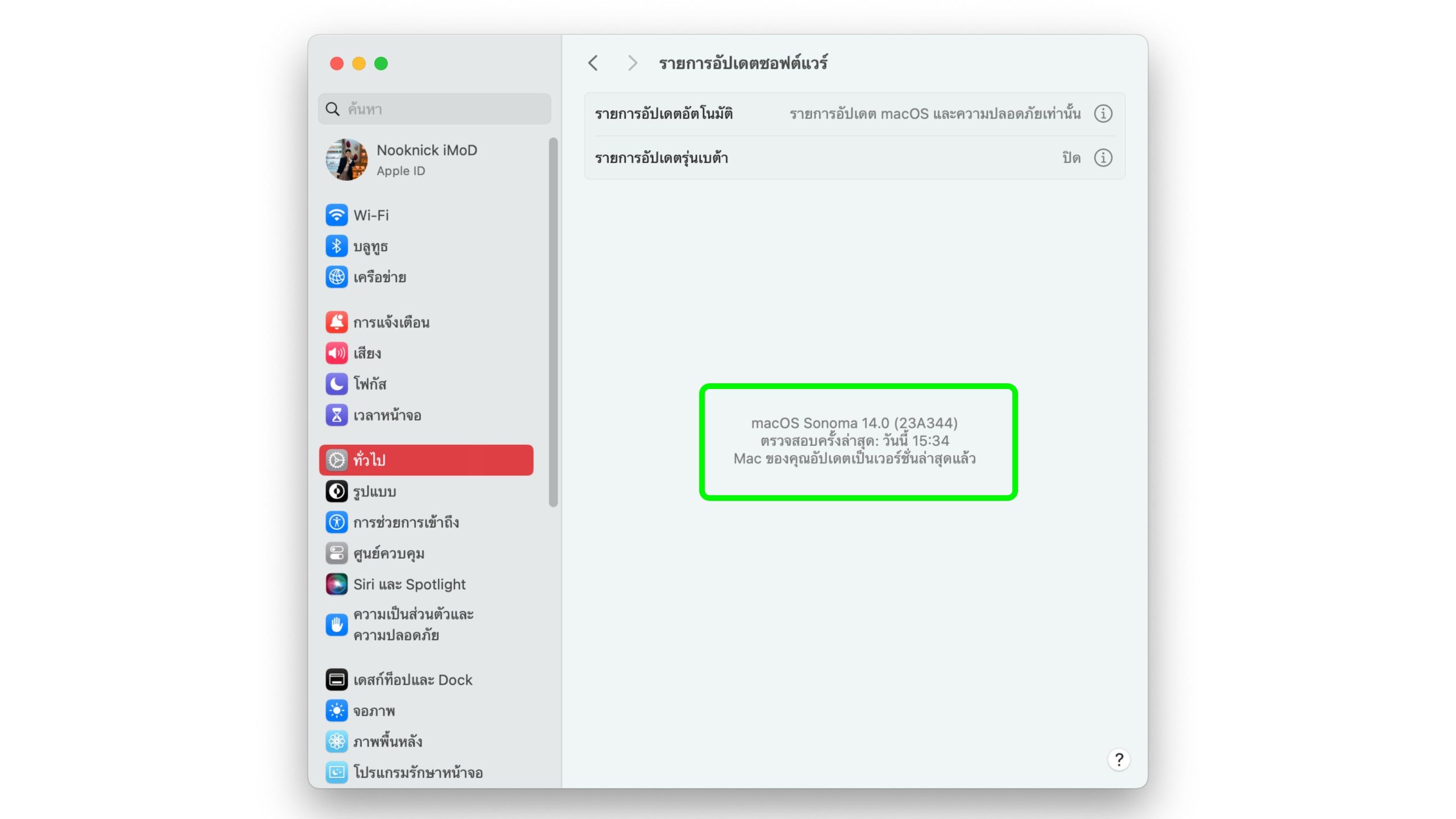 วิธีอัปเดต macOS ให้ไปที่ การตั้งค่าระบบ > ทั่วไป > รายการอัปเดตซอฟ์ตแวร์