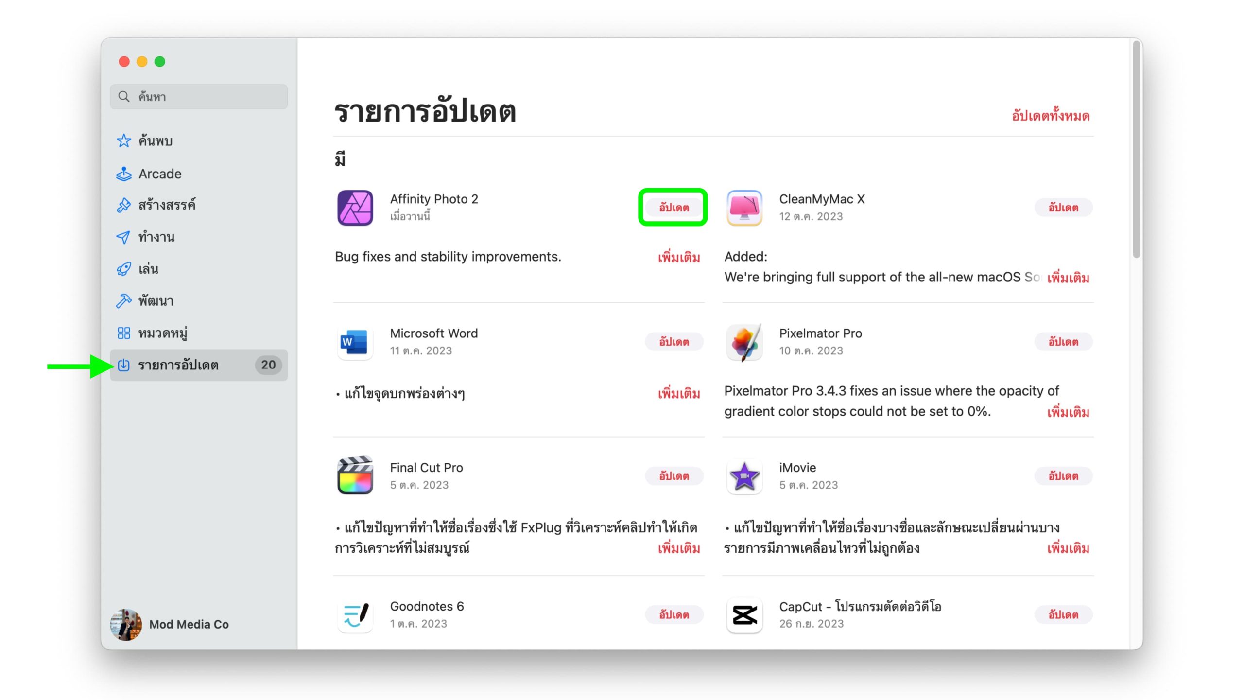 บางที ปัญหาอาจไม่ได้มากจากเครื่อง Mac ของเรา อาจเกิดจากปัญหามาจากตัวแอปที่เราใช้ แนะนำให้เข้าไปกดอัปเดตแอปใน Appl Store บ่อย ๆ