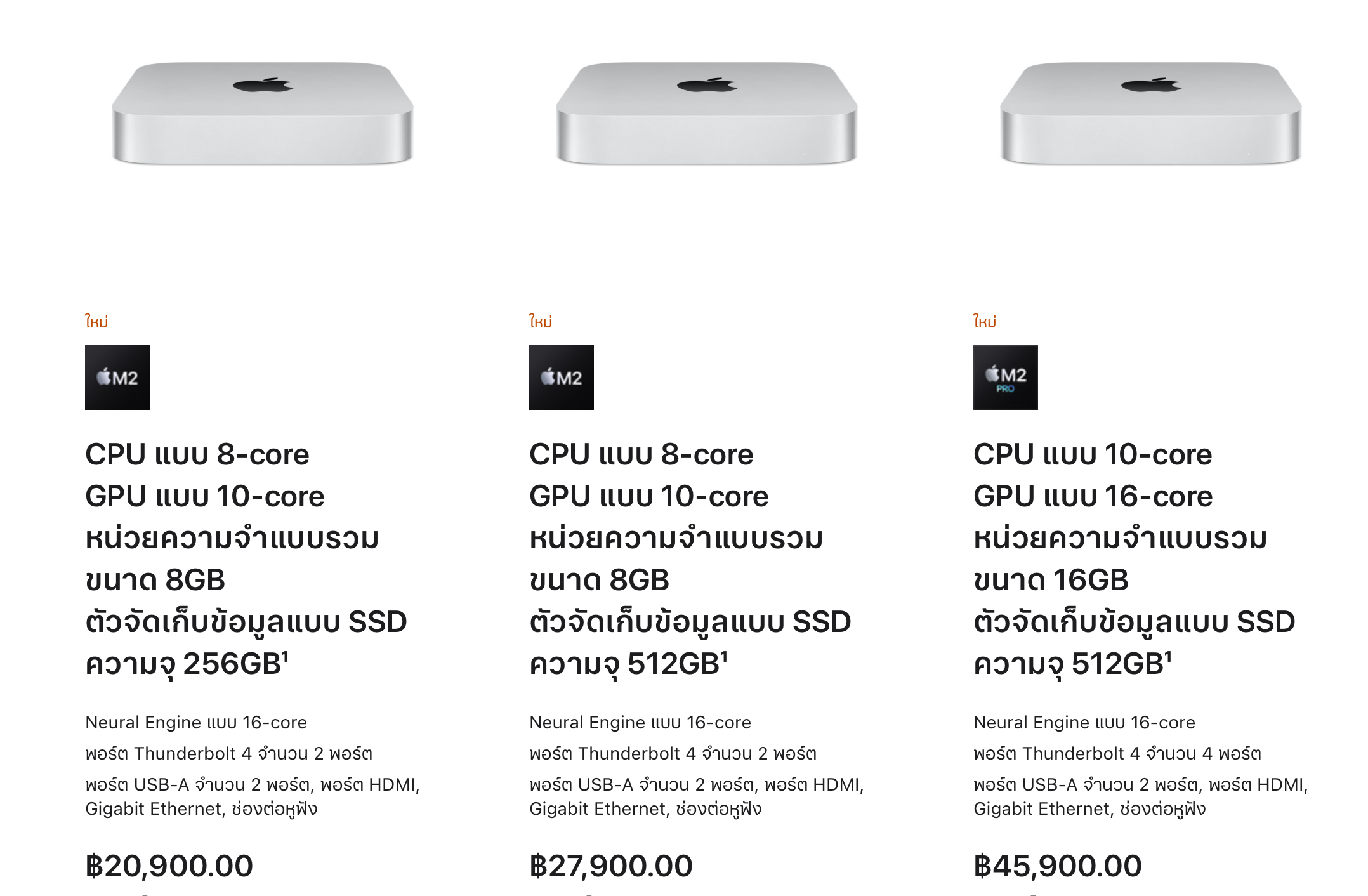 Mac mini ชิป M2 เริ่มต้นที่ราคา 20,900 บาท ตัวเครื่องยังใช้ดีไซน์เดิม แต่ปรับสเปคภายในใหม่ ใช้ Wi-Fi 6E