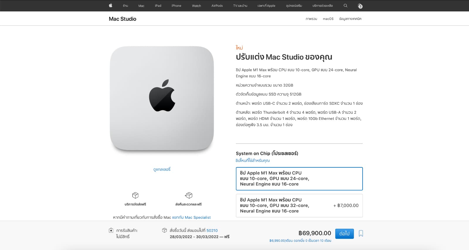 - Mac Studio รุ่นชิป M1 Max เริ่มต้น ฿69,900
