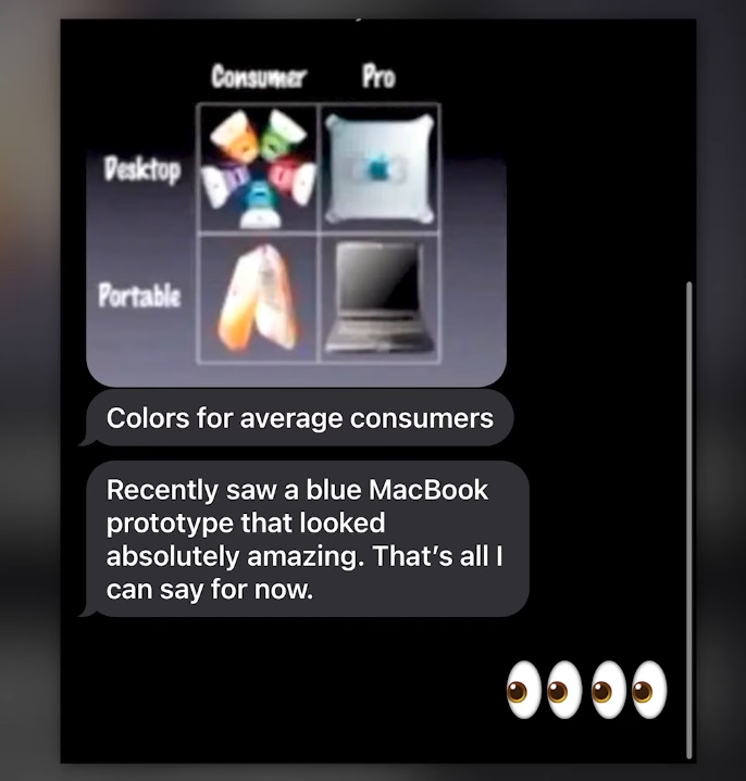 แหล่งข่าวของ Prosser เผยว่า สีใหม่ที่จะเพิ่มเข้ามาเป็นสีสำหรับผู้ใช้ทั่วไป พร้อมให้เบาะแสว่าจะมีสีเหมือน iBook G3 ซึ่ง Prosser ได้คาดการณ์ว่าสีใหม่ของ MacBook Air จะเหมือนกับสีของ iMac รุ่น 24 นิ้วชิป M1 ซึ่งผสมผสานระหว่างสีพาสเทลกับสีเข้ม