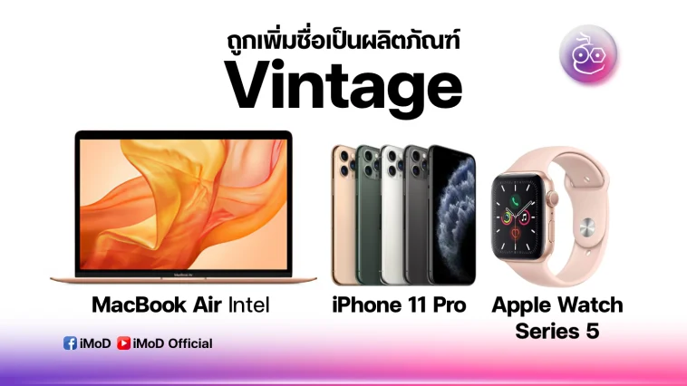 MacBook Air ชิป Intel รุ่นสุดท้าย, iPhone 11 Pro, Apple Watch Series 5 ถูกเพิ่มชื่อเป็นผลิตภัณฑ์ “Vintage”