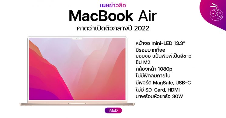 มีรายงานข่าวลือ MacBook Air ตัวใหม่ว่าจะใช้ดีไซน์ทรง MacBook Pro ใช้ชิป M2, มีพอร์ต MagSafe และ USB-C คาดว่าเปิดตัวกลางปี 2022