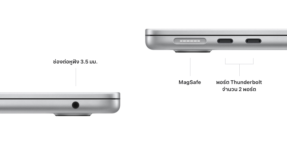 MacBook Air ชิป M2 มาพร้อมดีไซน์ใหม่หมด จอ Liquid Retina 13.6″, กล้องหน้า FaceTime HD ความละเอียด 1080p, ระบบเสียง 4 ลำโพง, มีพอร์ต MagSafe, ใช้ชิป M2 ตัวใหม่, ตัวเครื่องมีให้เลือก 4 สี ได้แก่ สีมิดไนท์ สีสตาร์ไลท์ สีเงิน และสีเทาสเปซเกรย์