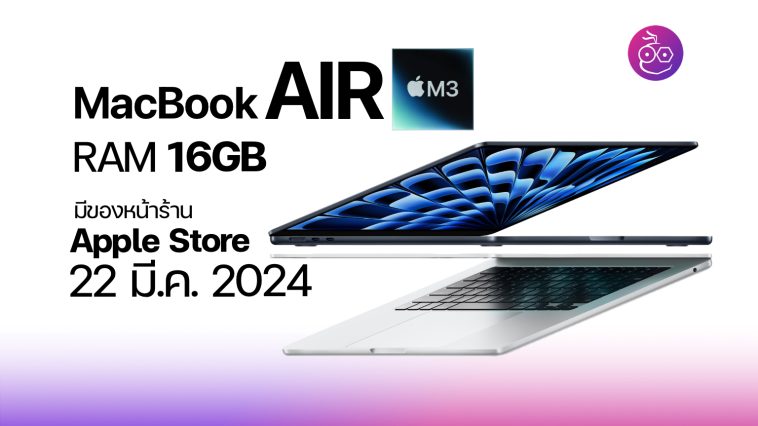 MacBook Air ชิป M3 รุ่น RAM 16GB พร้อมขายหน้าร้าน 22 มี.ค. 2024
