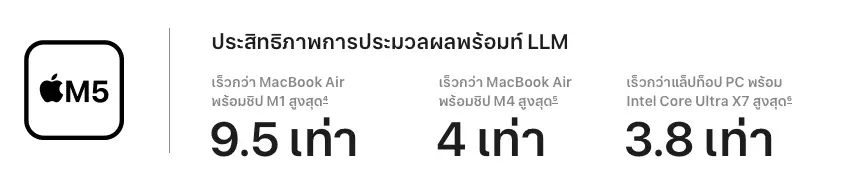 - ชิป M5 ใหม่ ประสิทธิภาพ AI แรงกว่า M4 ถึง 4 เท่า