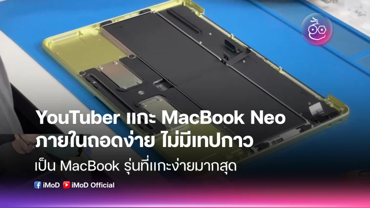 YouTuber แกะเครื่อง MacBook Neo พบภายในเรียบง่าย อะไหล่ถอดง่าย ไม่มีเทปกาว