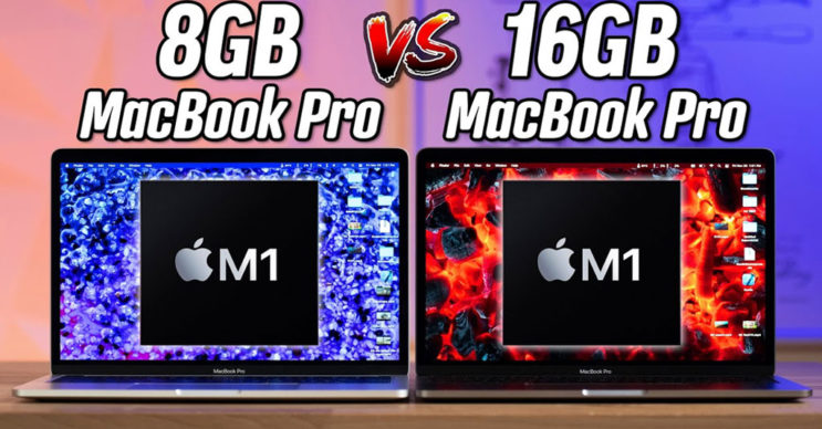 MacBook Pro 13 นิ้วรุ่นชิป M1, ผู้ใช้สามารถเลือก RAM ได้ 8GB หรือ 16GB ซึ่ง YouTuber ได้เปรียบเทียบประสิทธิภาพให้เห็นกันว่าแตกต่างกันขนาดไหน