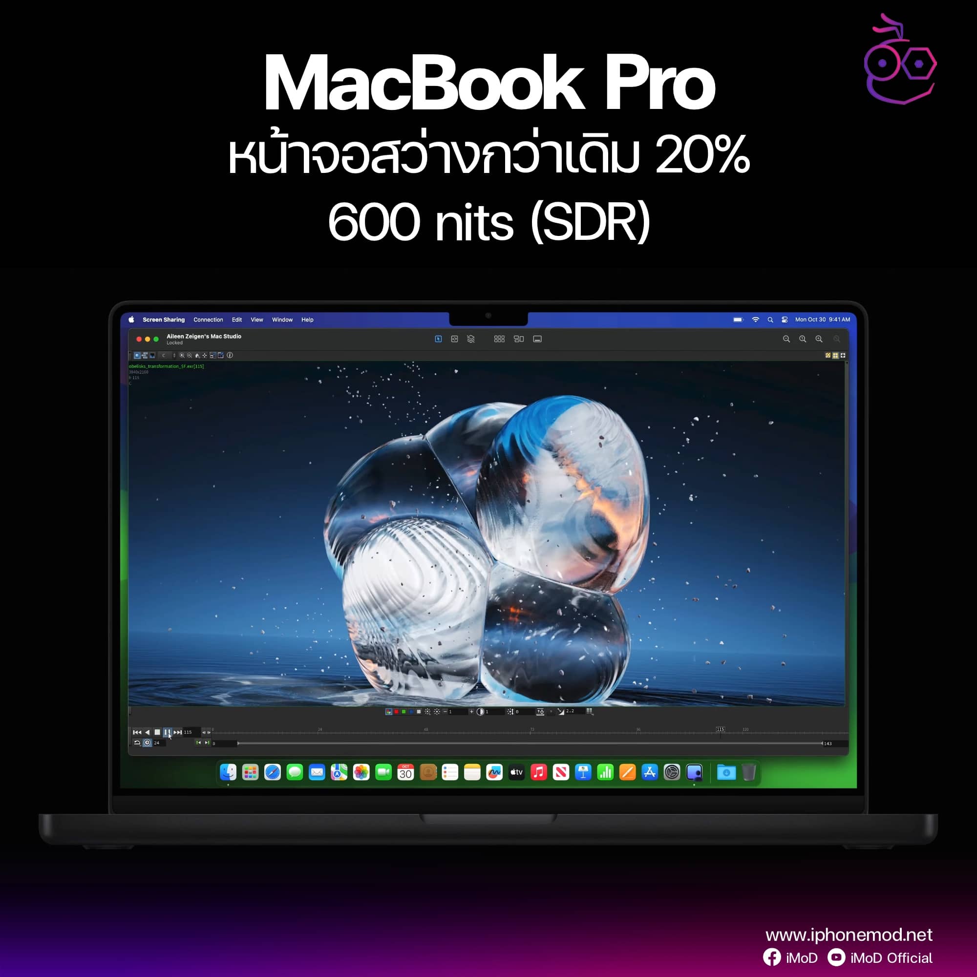 ล่าสุด Apple ได้เผยออกมาว่าหน้าจอ MacBook Pro 14″, 16″ ชิป M3 ตัวใหม่นั้น จะมีความสว่างกว่ารุ่นเดิมถึง 20%