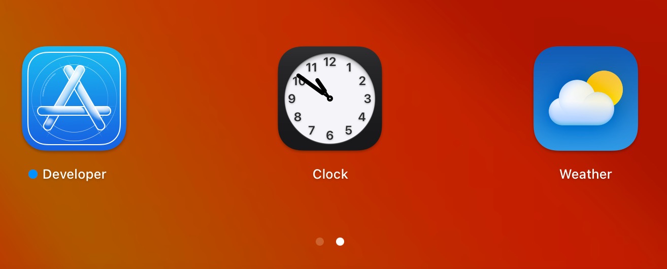 ก่อนอื่นมาดูไอคอนกันก่อน ไอคอนแอปนาฬิกา (Clock) บน macOS 13 Ventura นั้นมีรูปแบบคล้าย ๆ กับบน iPhone แต่การแสดงไอคอนที่ส่วน Dock ด้านล่างและใน Launchpad จะแสดงเวลาปัจจุบันแบบเรียลไทม์ แต่ไม่มีเข็มวินาทีเคลื่อนไหวเหมือนกับ iPhone