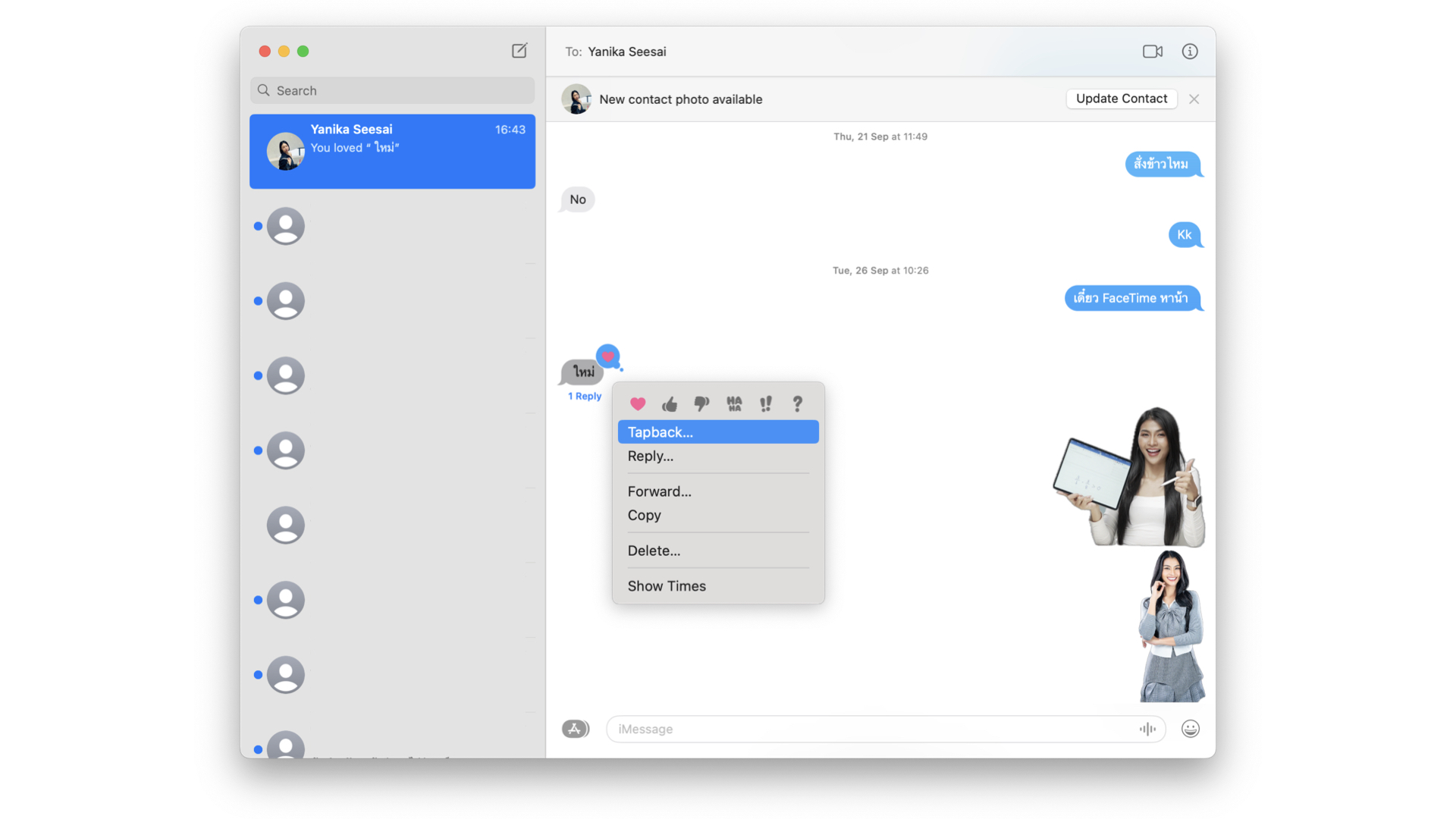 ในแอปข้อความบน macOS Sonoma 14.1 เพิ่มปุ่ม TabBack บนข้อความที่สามารถแสดงความรู้สึกบนข้อความของเพื่อนได้