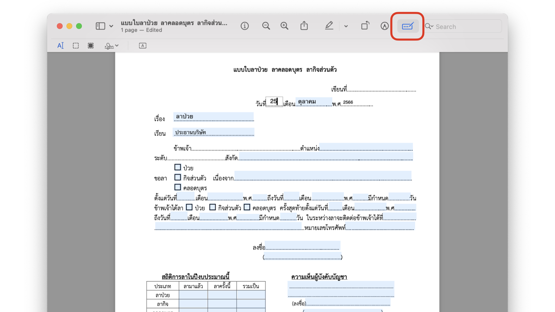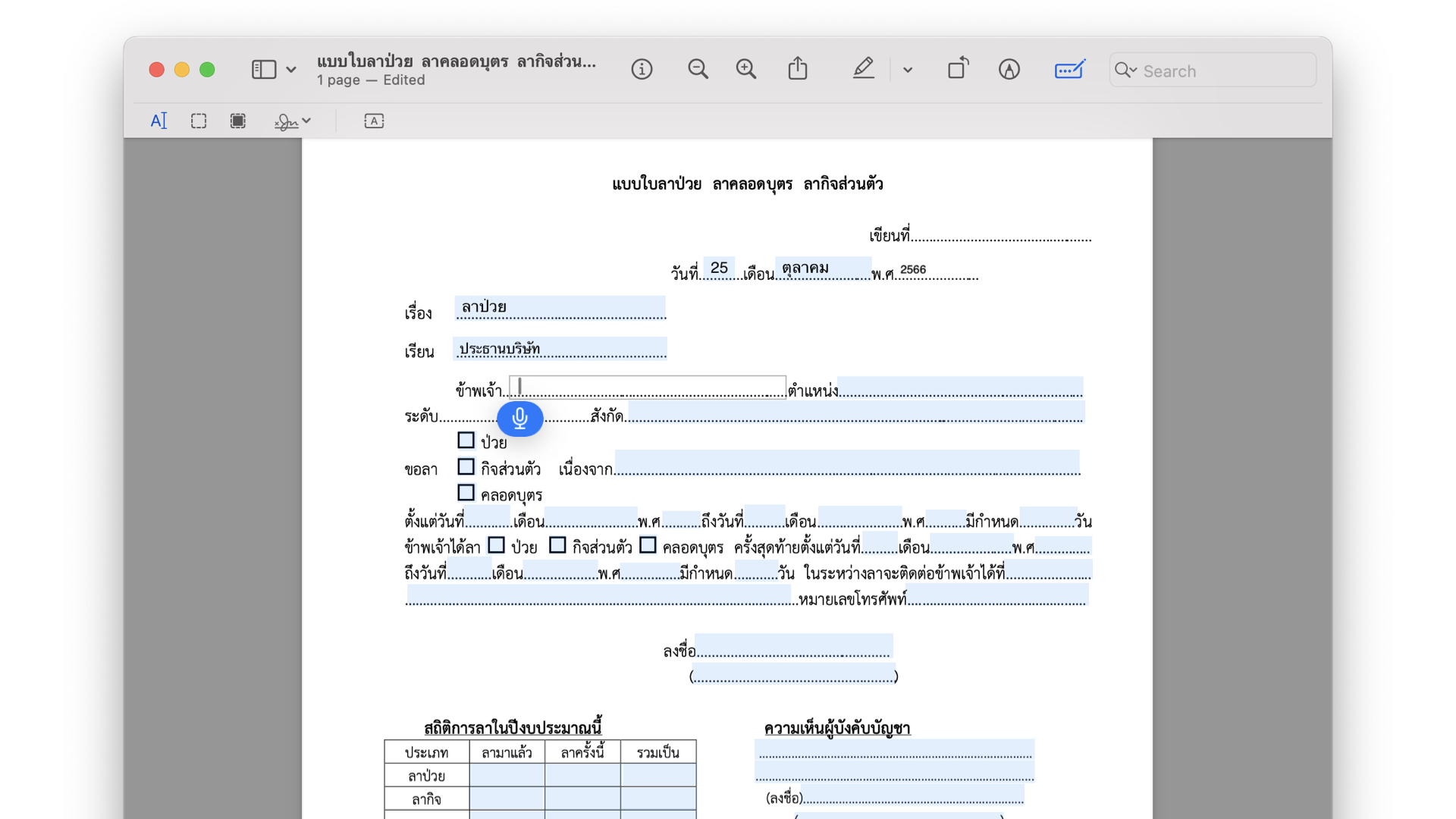 ฟีเจอร์ AutoFill เปิดให้ใช้งานแล้วตั้งแต่ macOS Sonoma 14 โดยเป็นฟีเจอร์ที่ระบบจะตรวจจับช่องว่างที่ต้องกรอกข้อมูลลงไปในไฟล์ PDF โดยอัตโนมัติ แต่เวอร์ชันล่าสุด macOS 14.1 อัปเดตให้สามารถใช้ฟีเจอร์ Dictation หรือการป้อนตามคำบอกร่วมกับฟีเจอร์ AutoFill