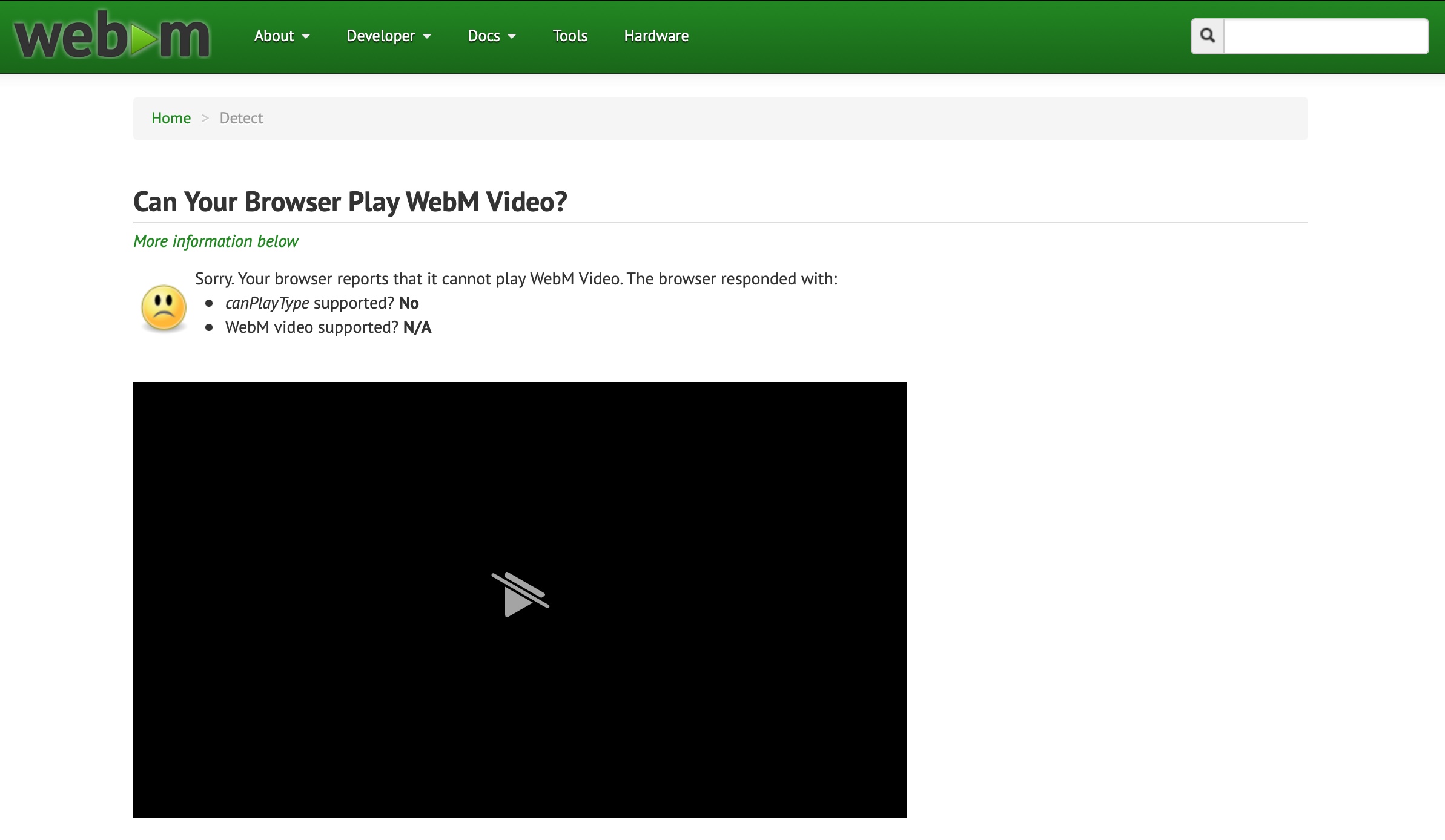 สำหรับการทดสอบว่า Safari ใน macOS เล่นวิดีโอ WebM ได้หรือไม่ ให้เข้าไปที่เว็บไซต์ https://www.webmproject.org/detect/